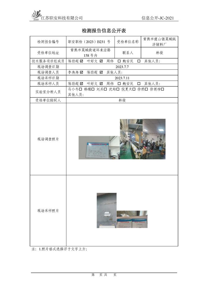 檢測報告公示