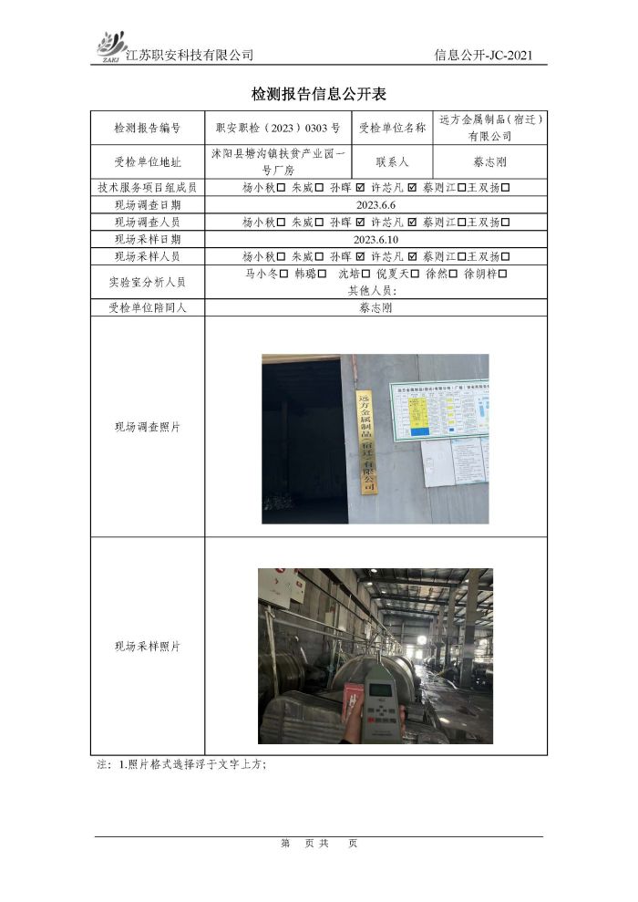 檢測報告公示