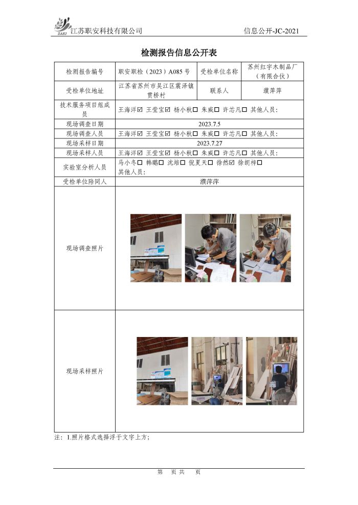 檢測報告公示