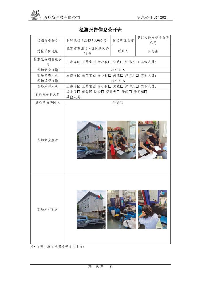 檢測報告公示