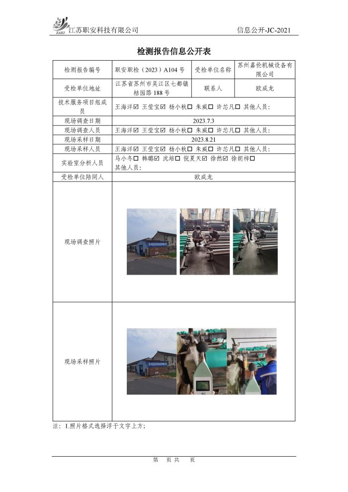 檢測報告公示
