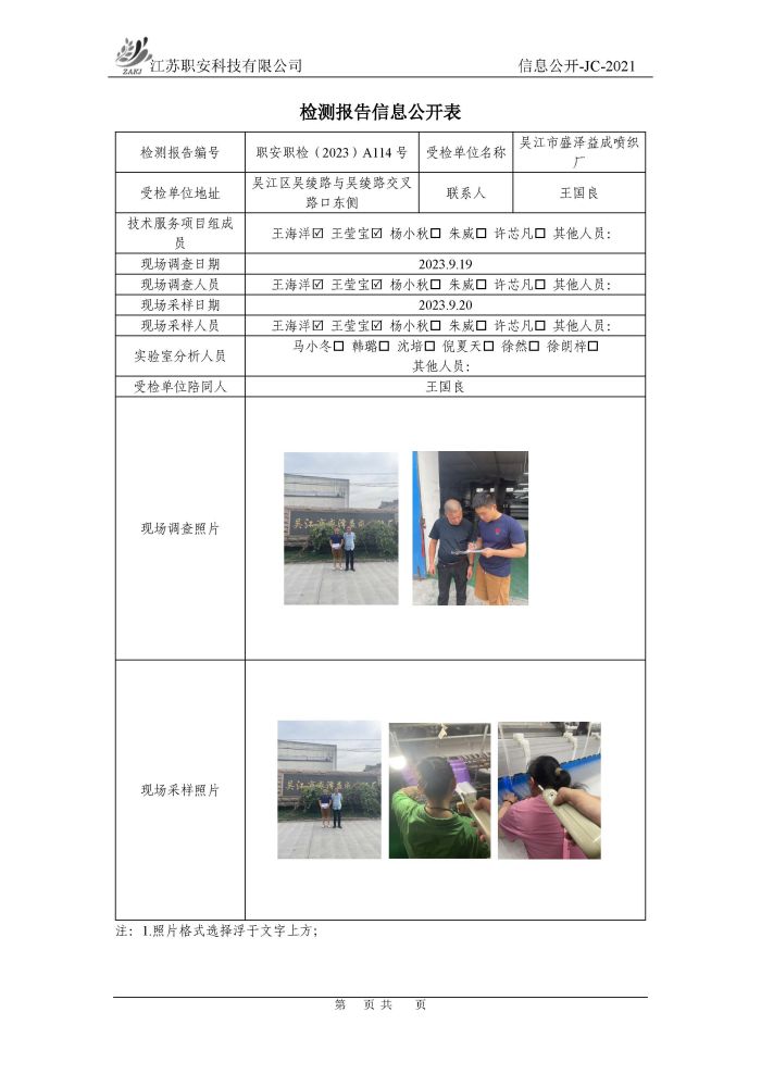 檢測報告公示