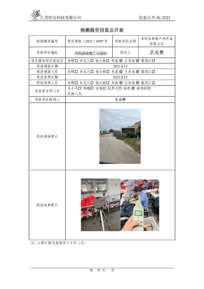 檢測報告公示
