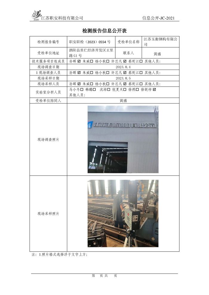 檢測報告公示