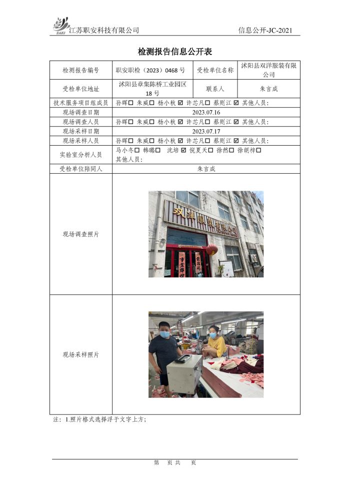 檢測報告公示