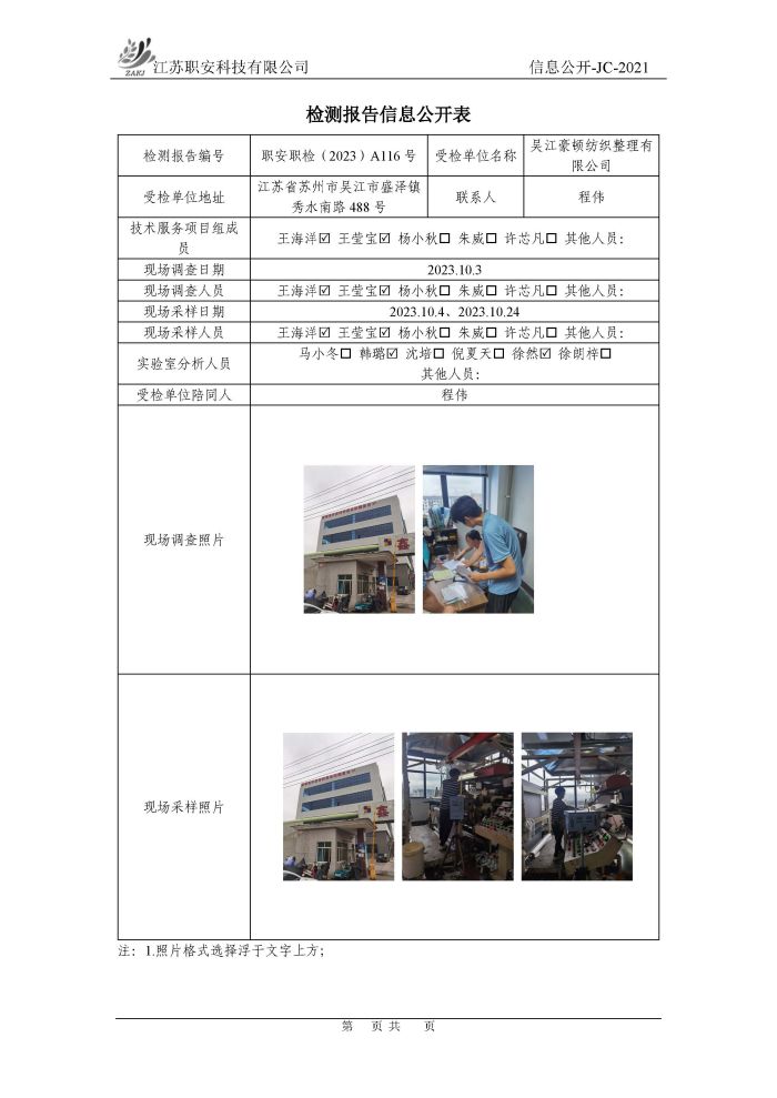 檢測報告公示