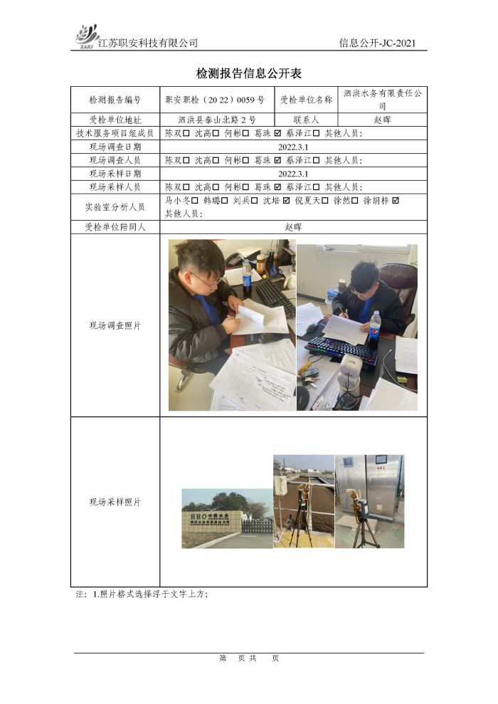 檢測報告公示
