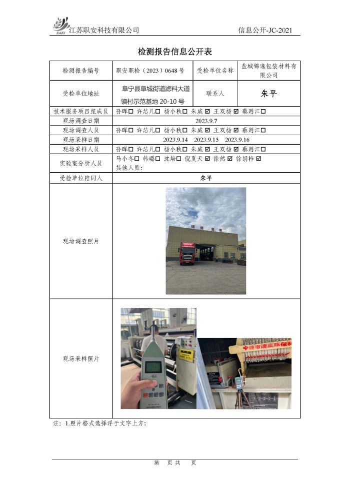檢測報告公示