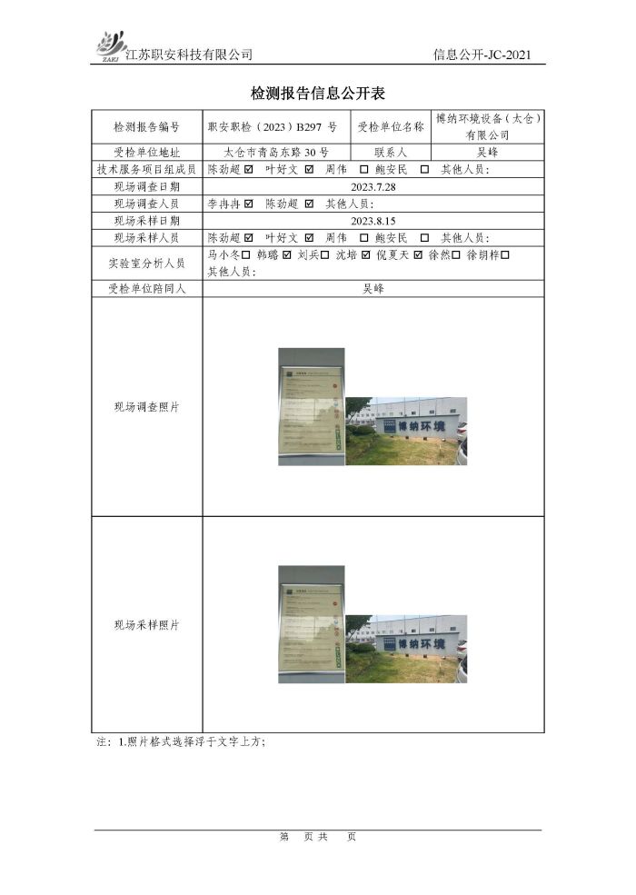 檢測報告公示
