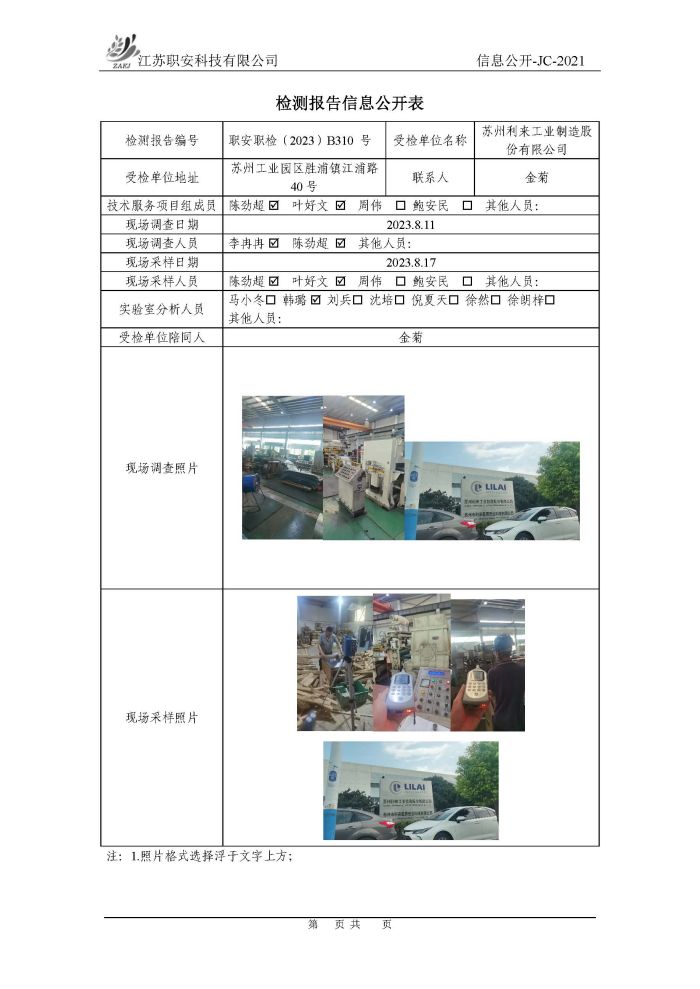 檢測報告公示