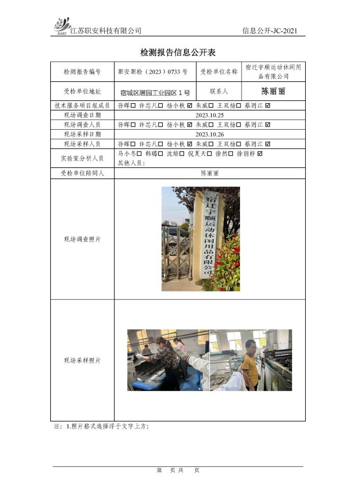 檢測報告公示