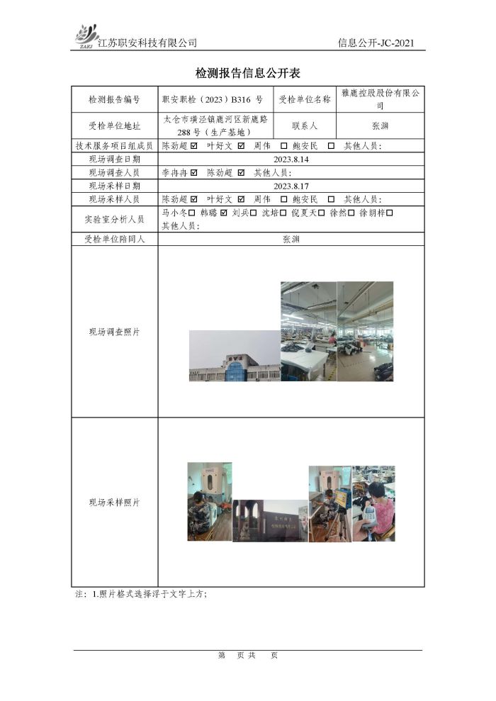 檢測報告公示