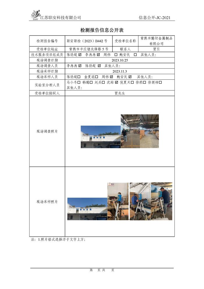 檢測報告公示