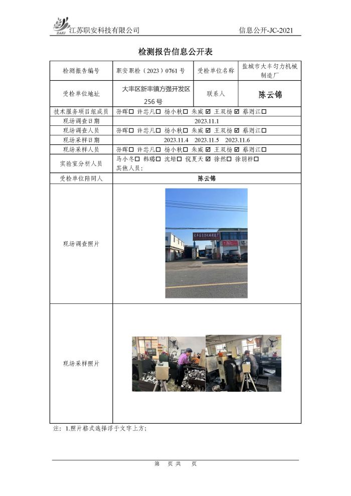 檢測報告公示
