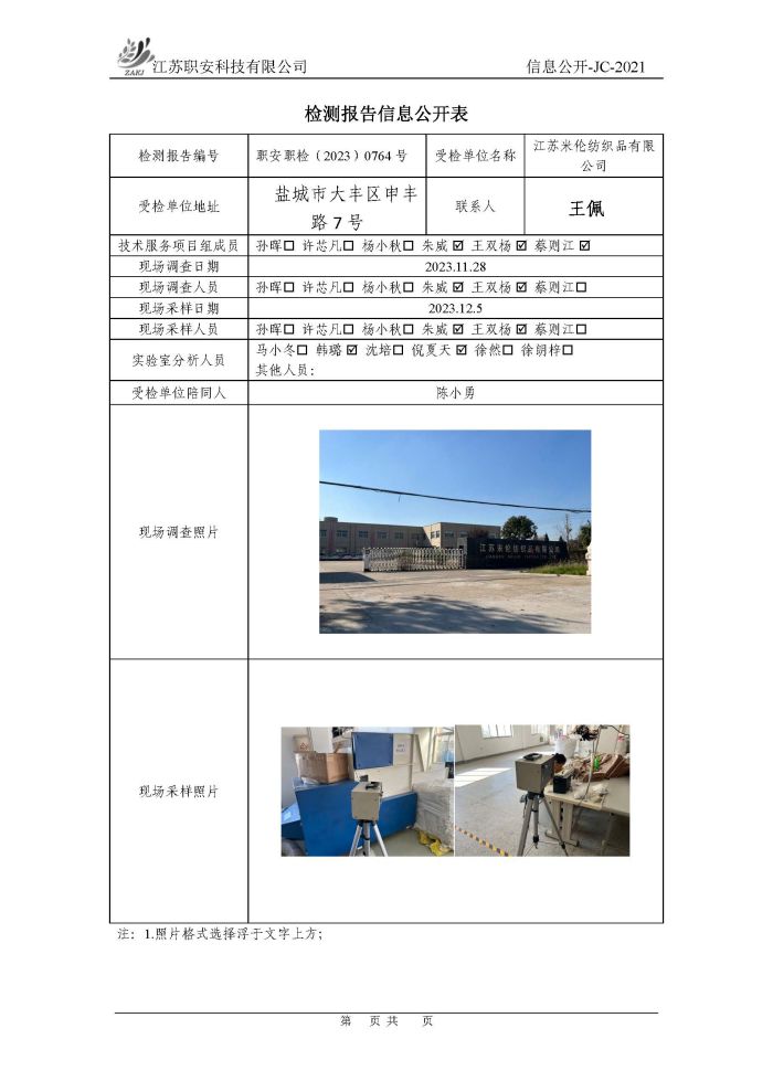 檢測報告公示