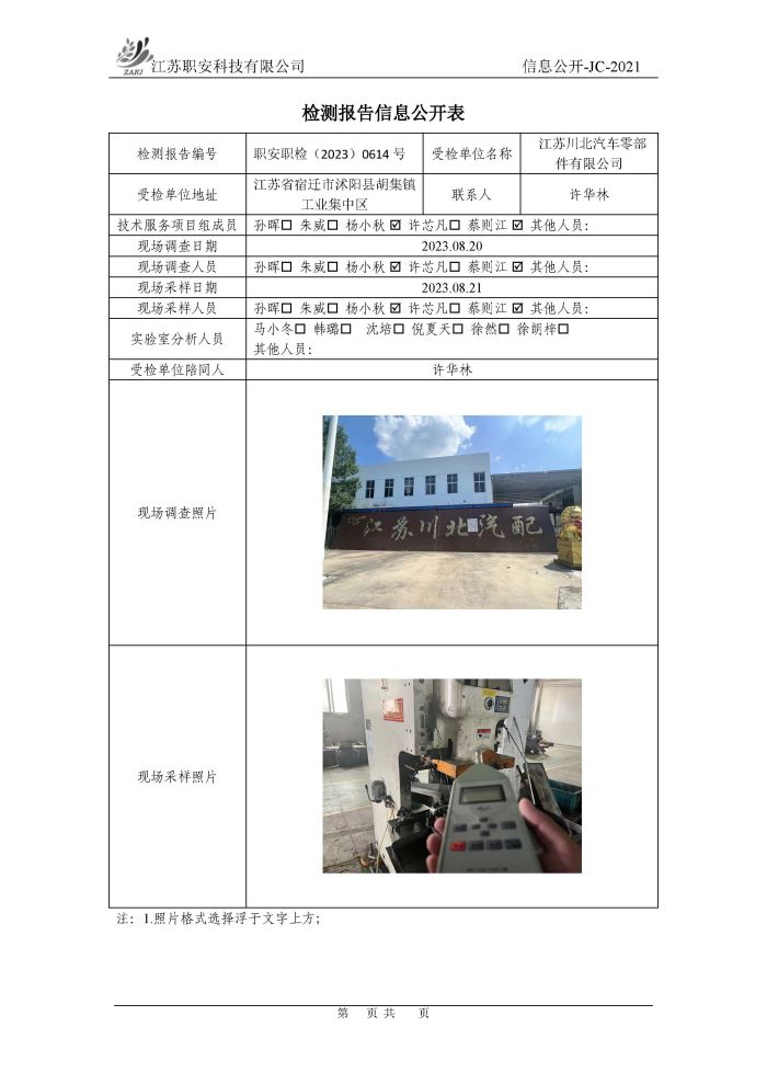 檢測報告公示