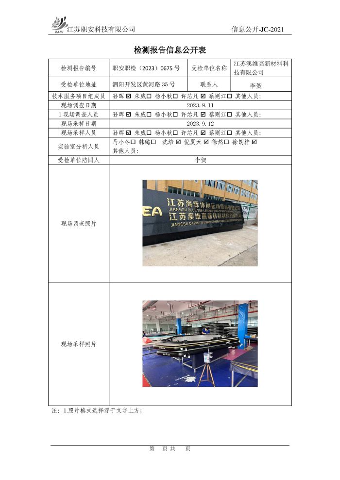 檢測報告公示