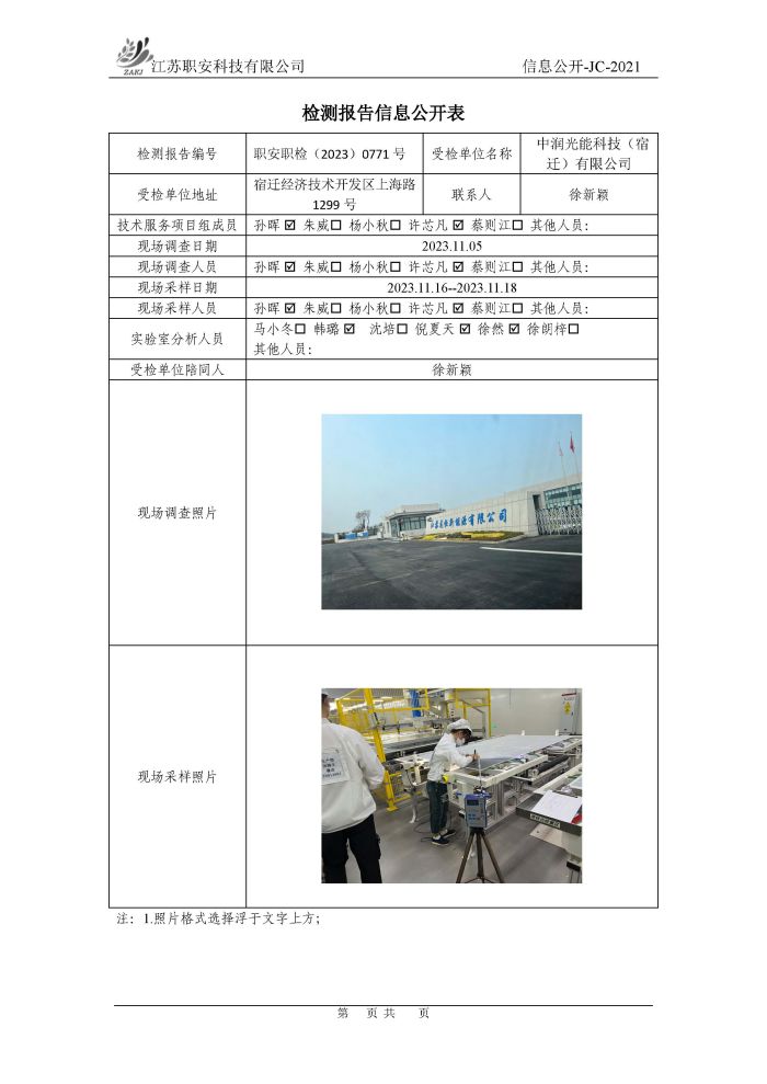 檢測報告公示