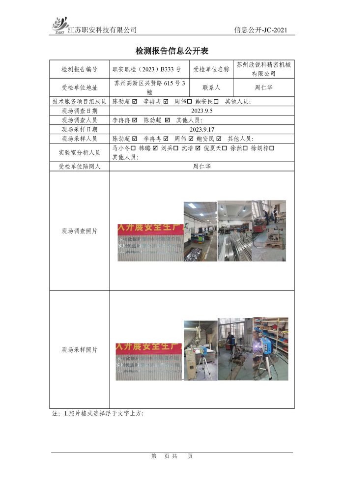 檢測報告公示