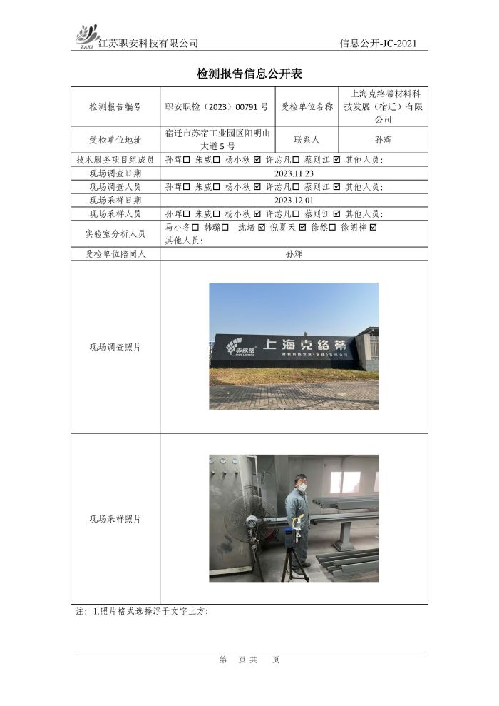 檢測報告公示