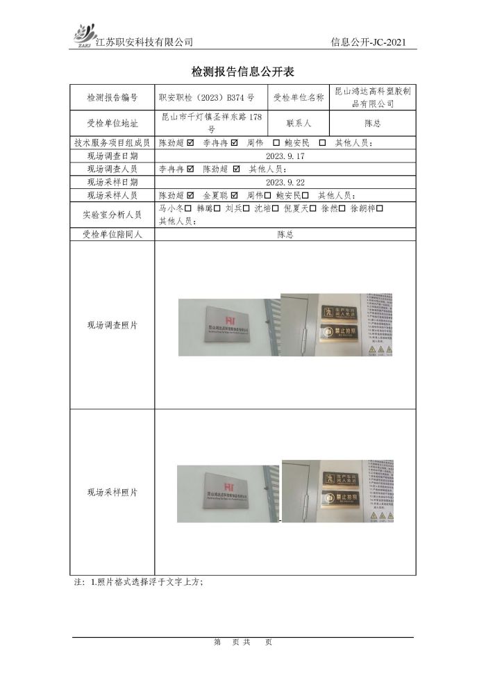 檢測報告公示
