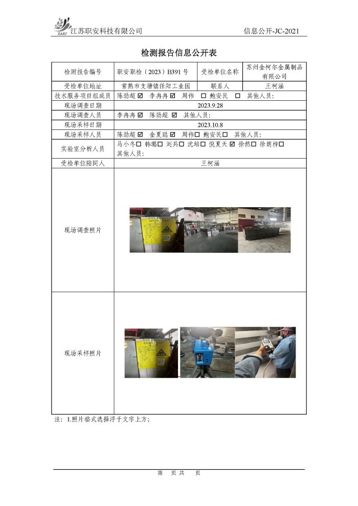 檢測報告公示