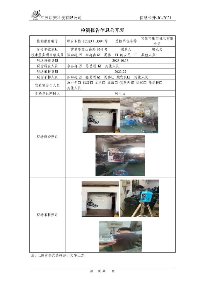 檢測報告公示
