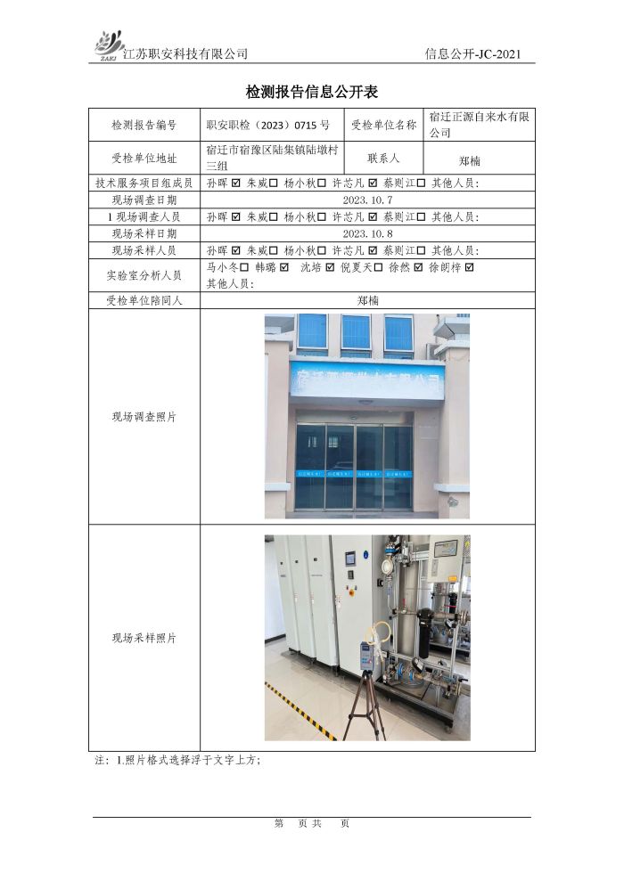 檢測報告公示