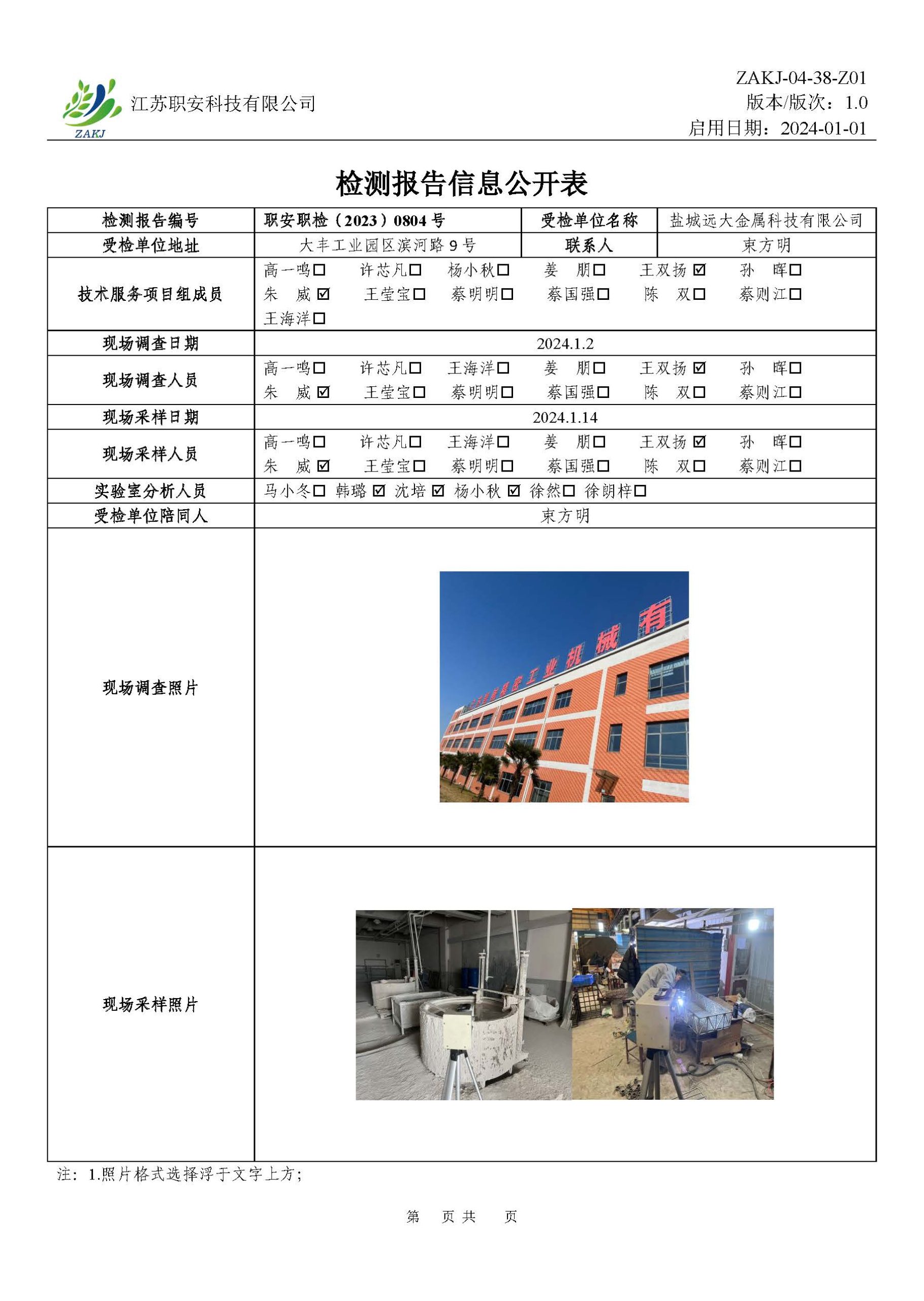 檢測報告公示