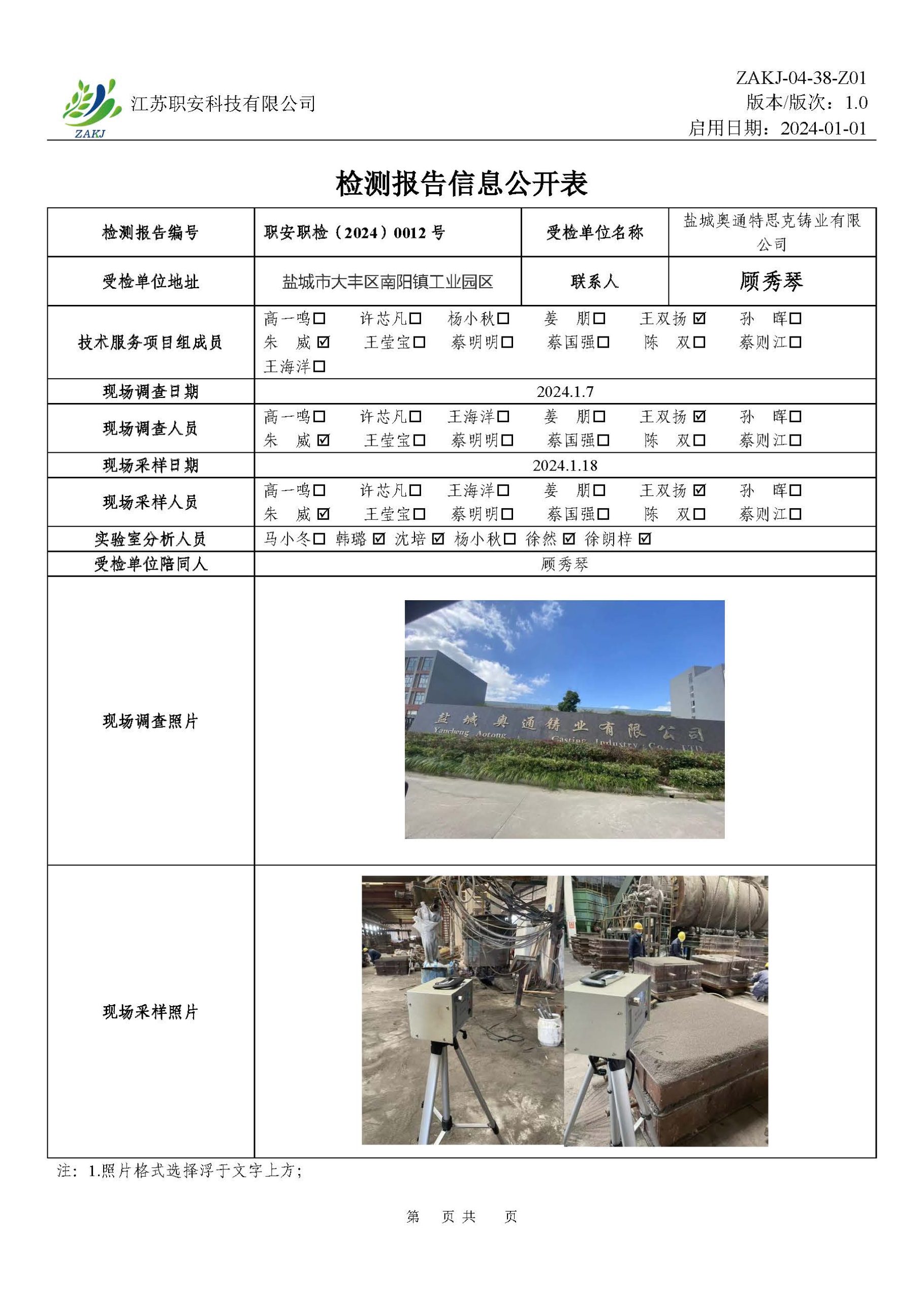 檢測報告公示