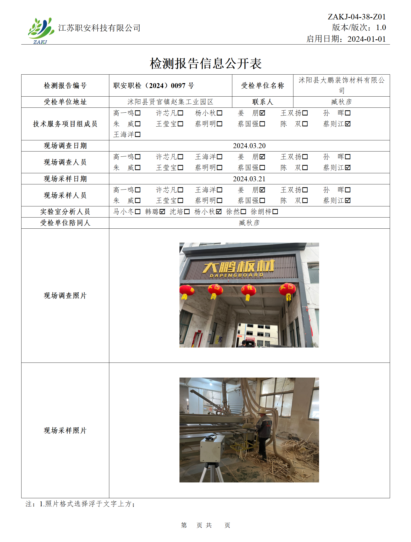 檢測報告公示