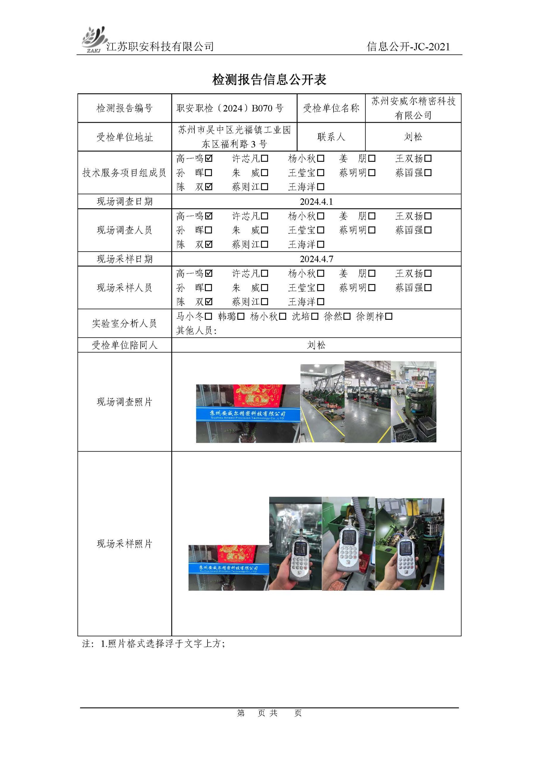 檢測報告公示