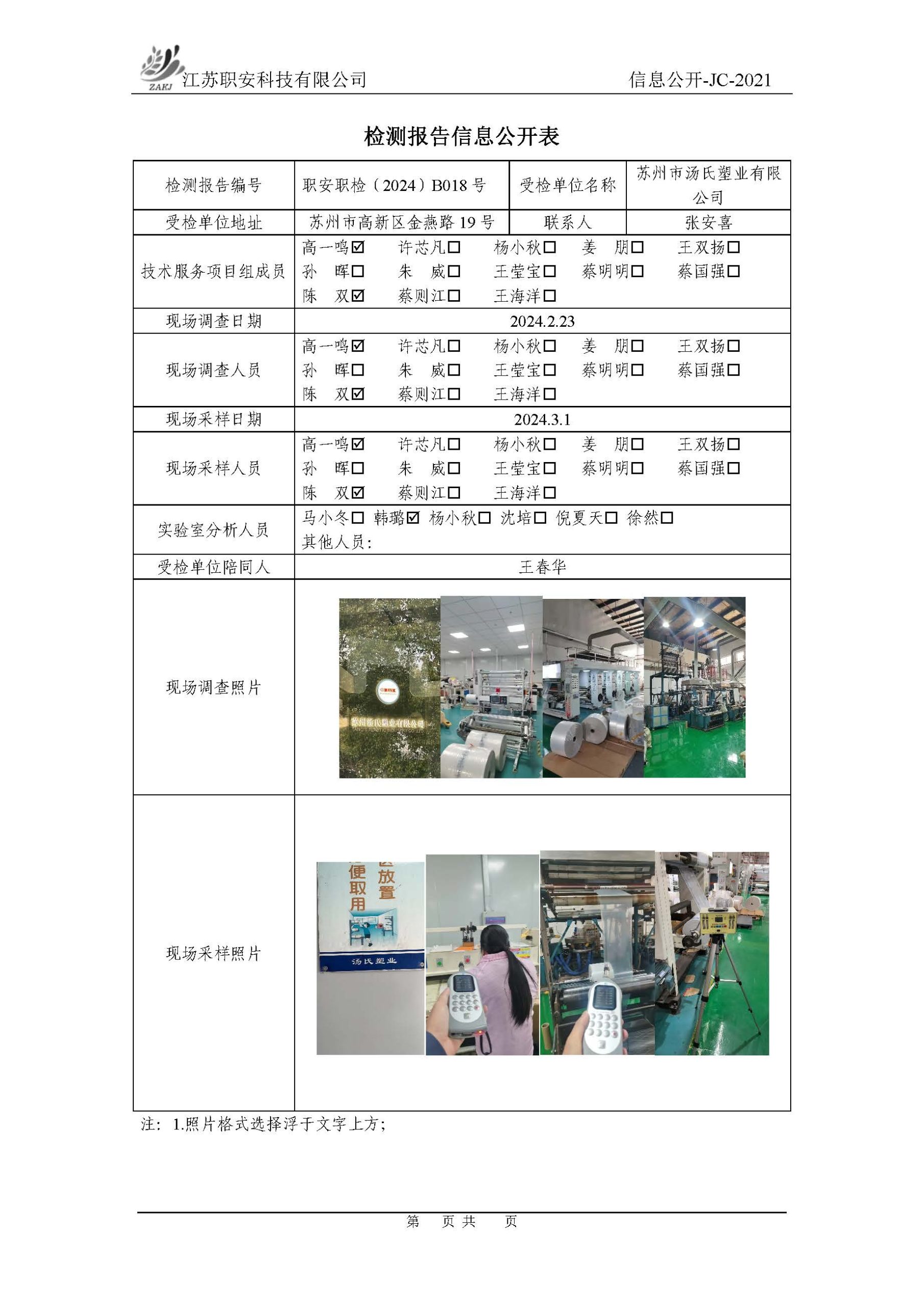 檢測報告公示