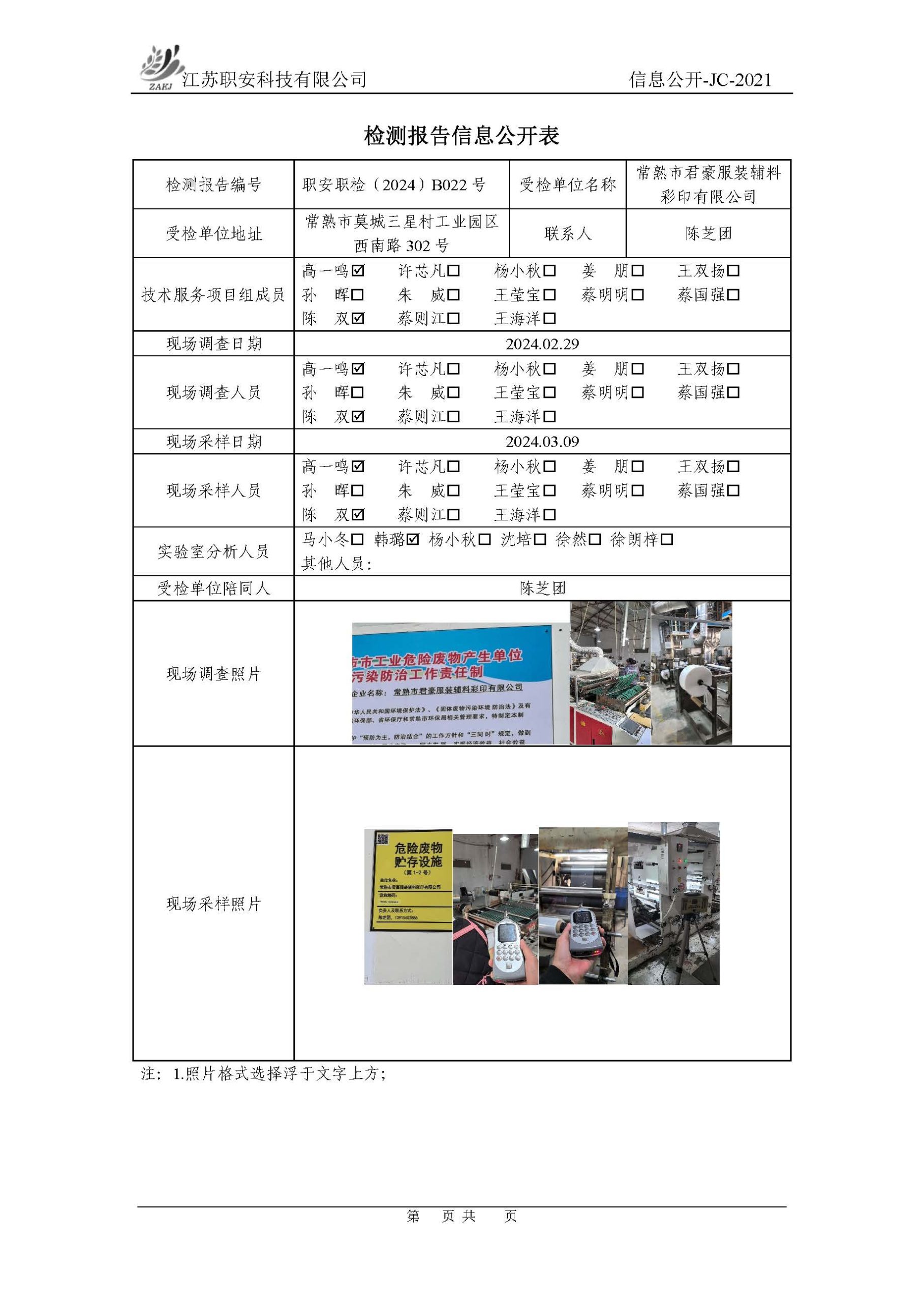 檢測報告公示