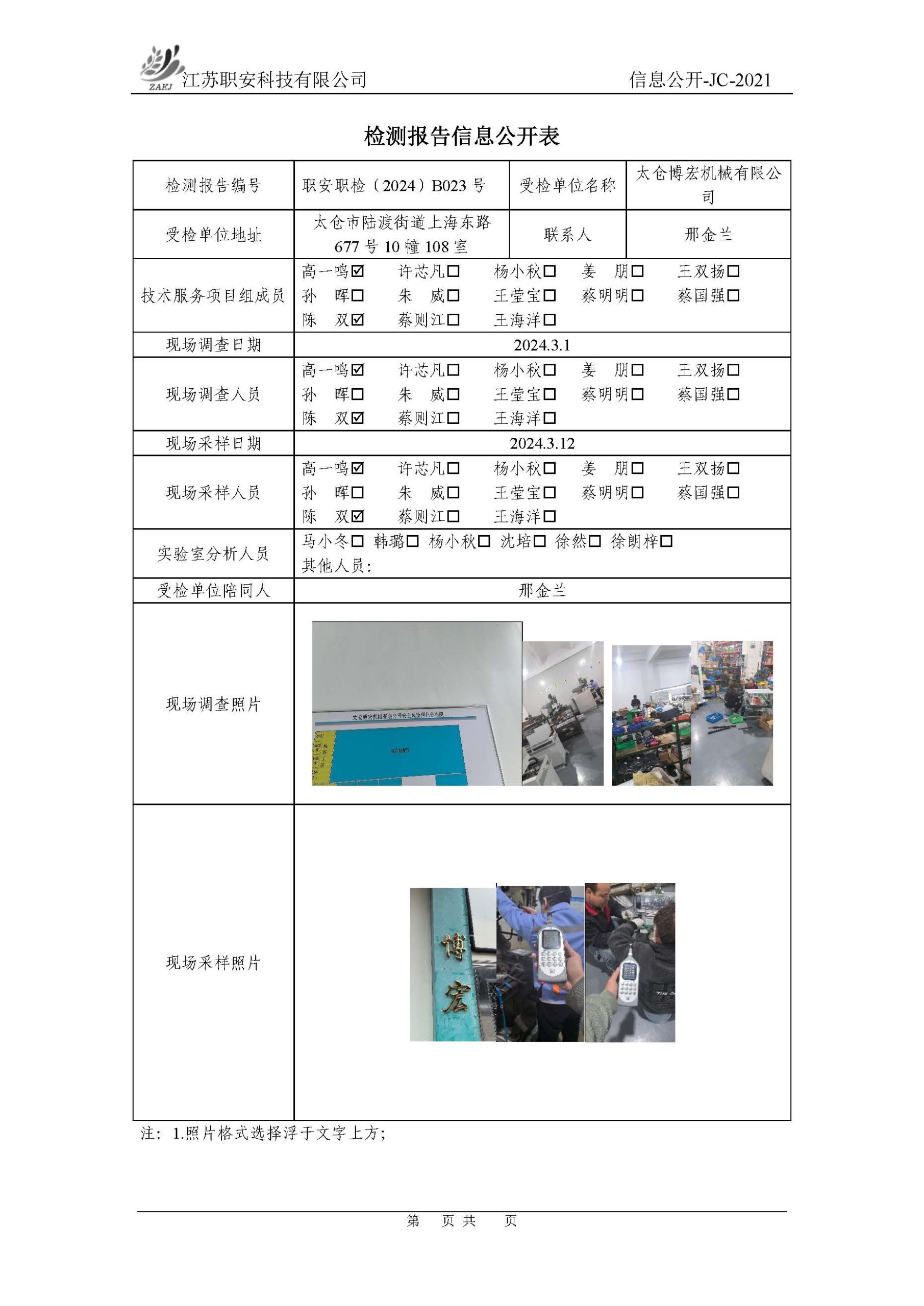 檢測報告公示