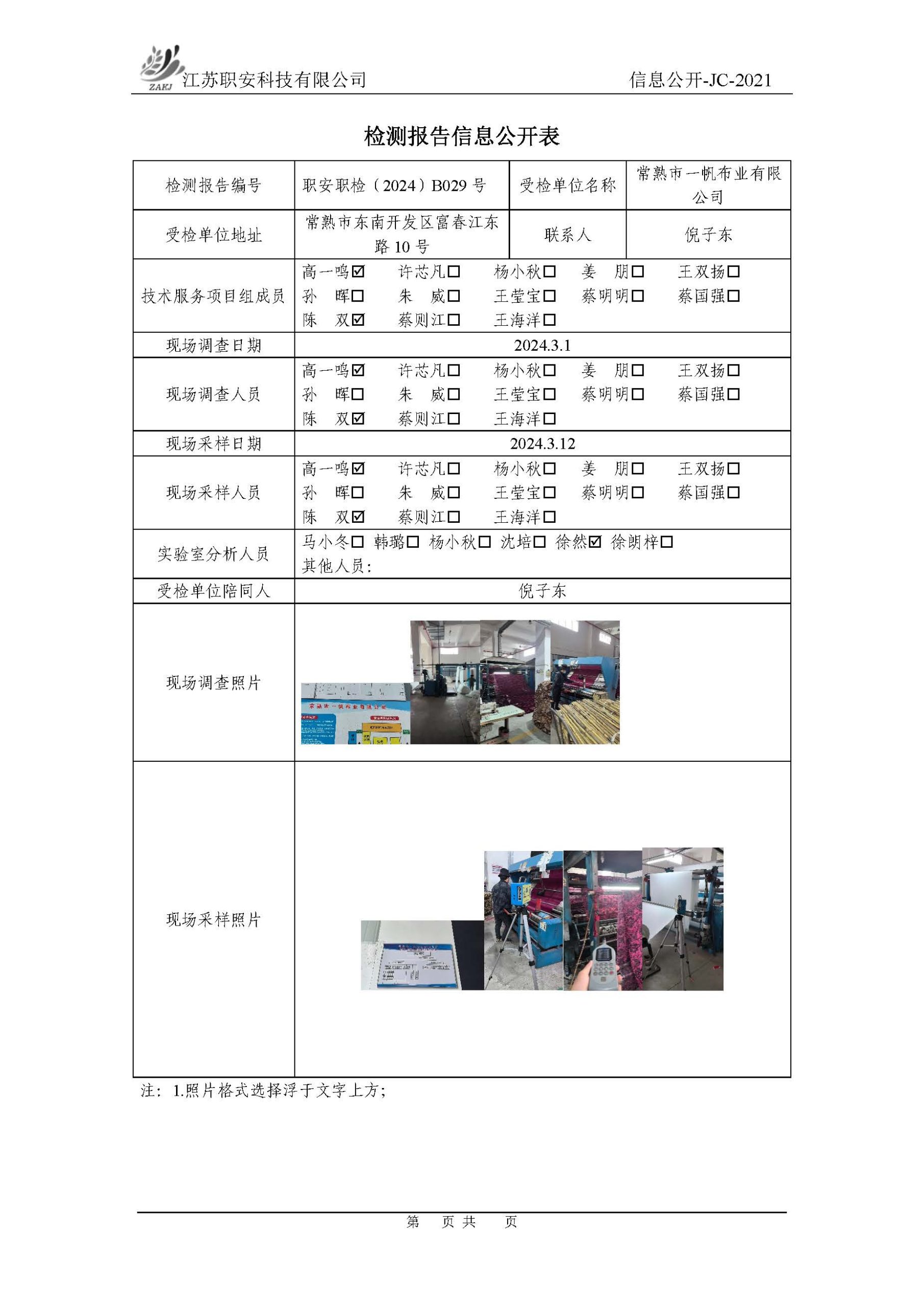 檢測報告公示