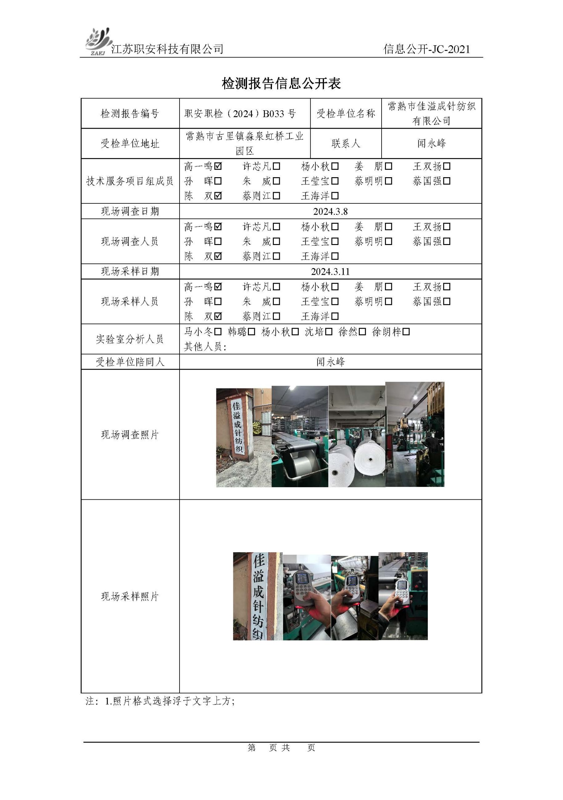 檢測報告公示