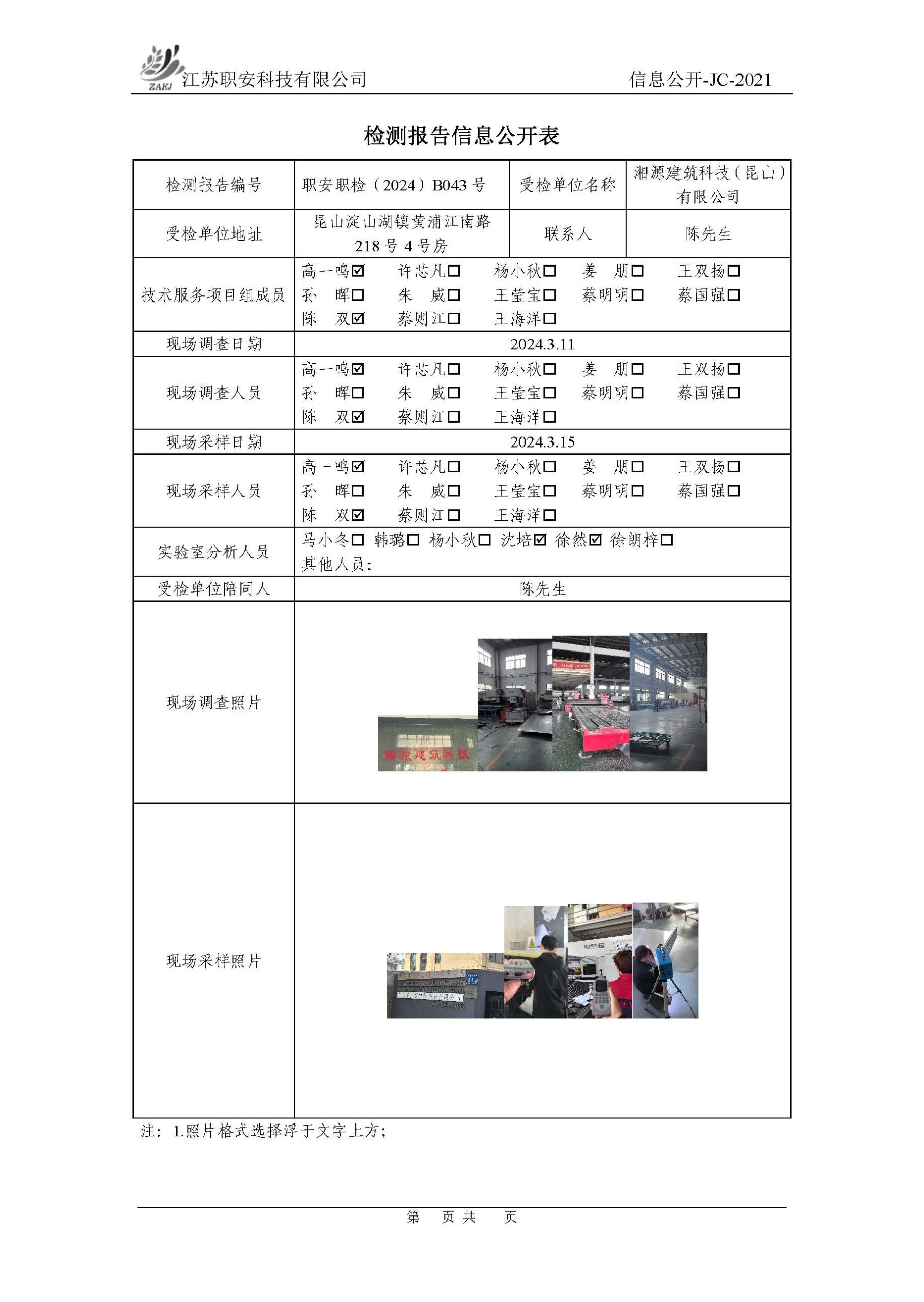 檢測報告公示