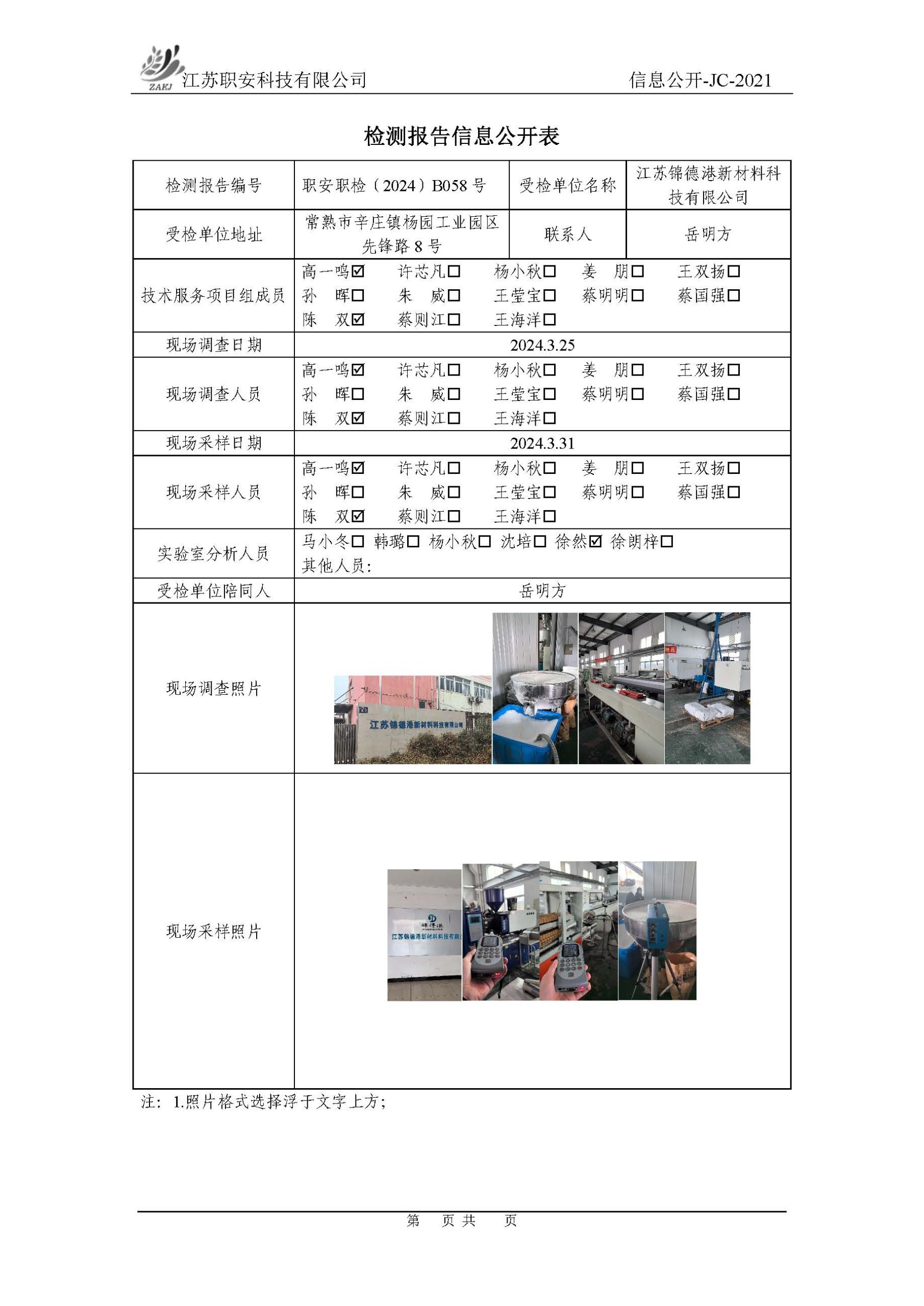 檢測報告公示