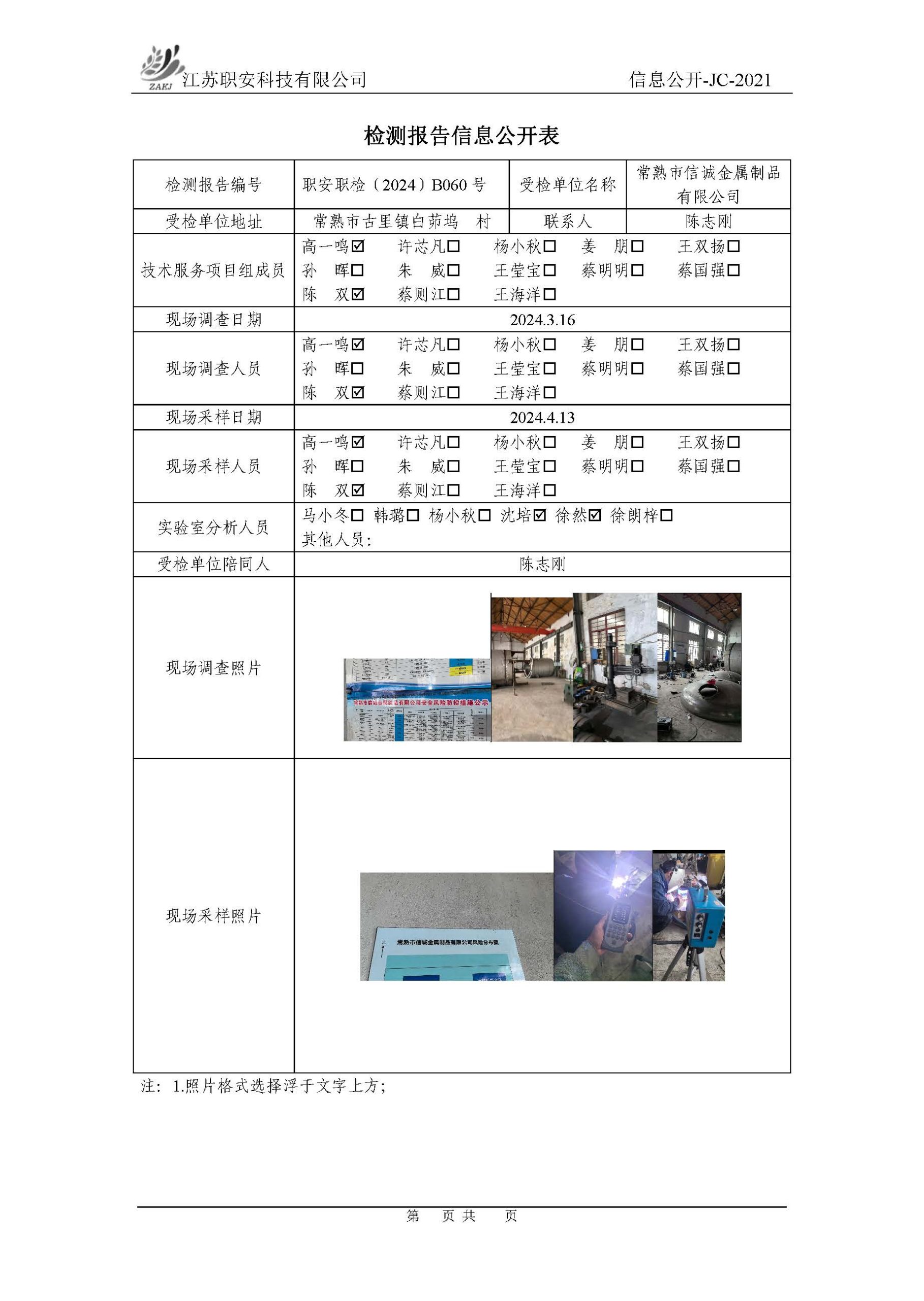 檢測報告公示