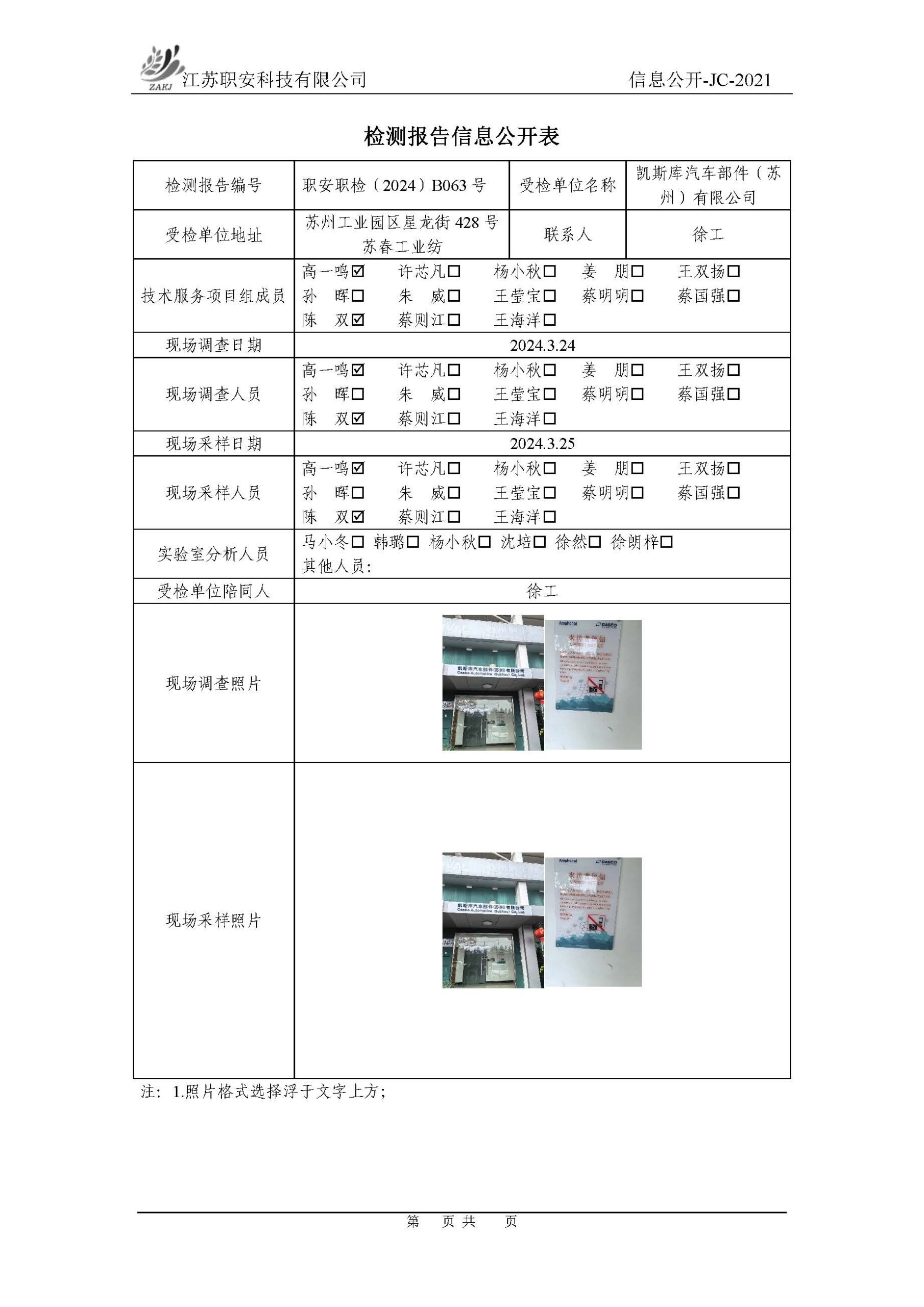 檢測報告公示