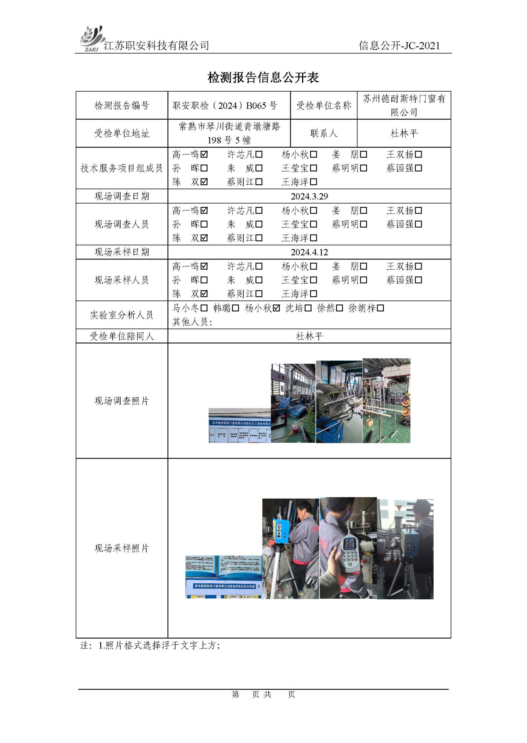檢測報告公示