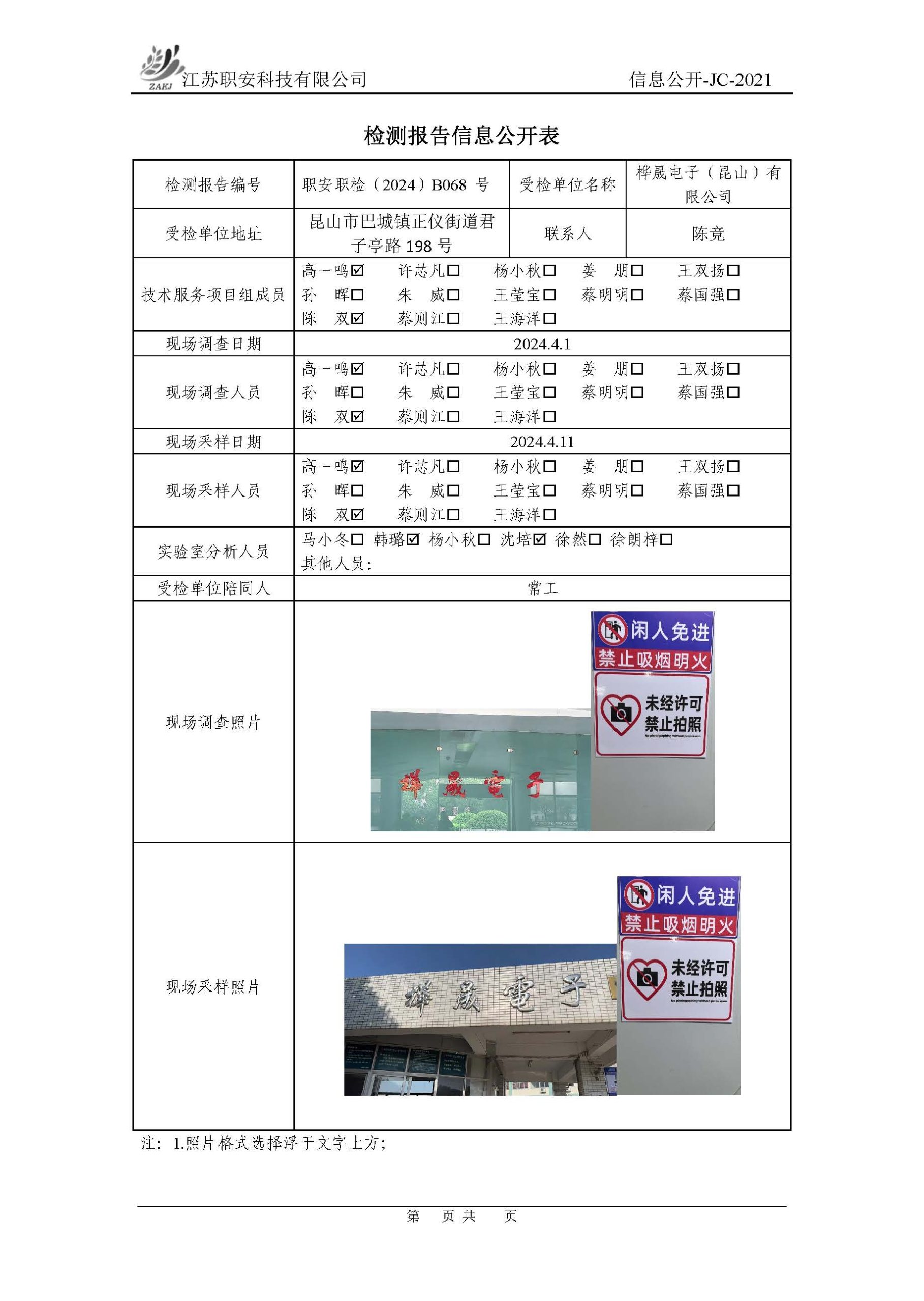 檢測報告公示