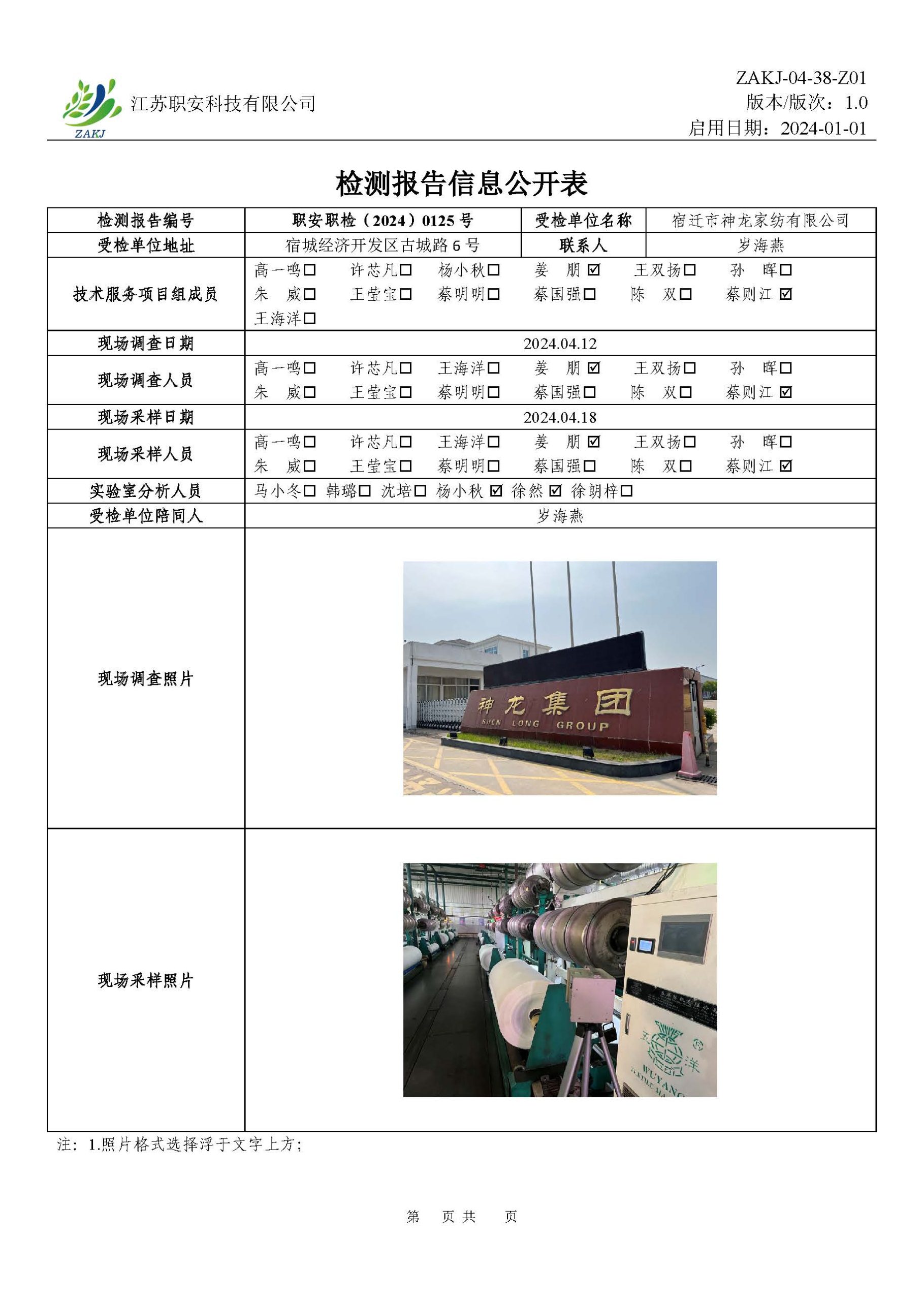 檢測報告公示