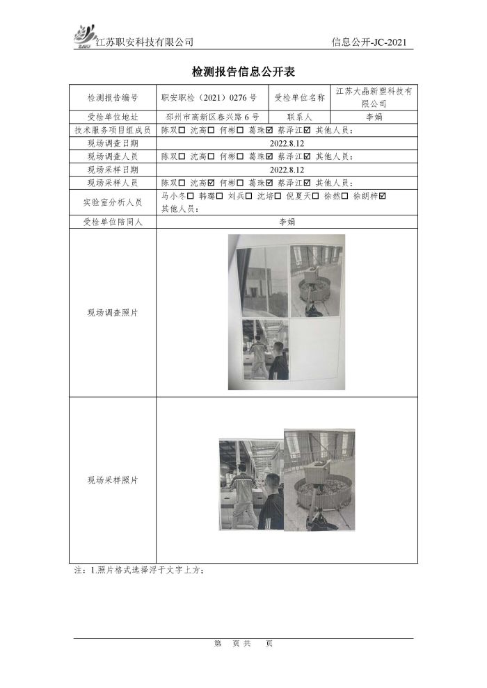 檢測報告公示