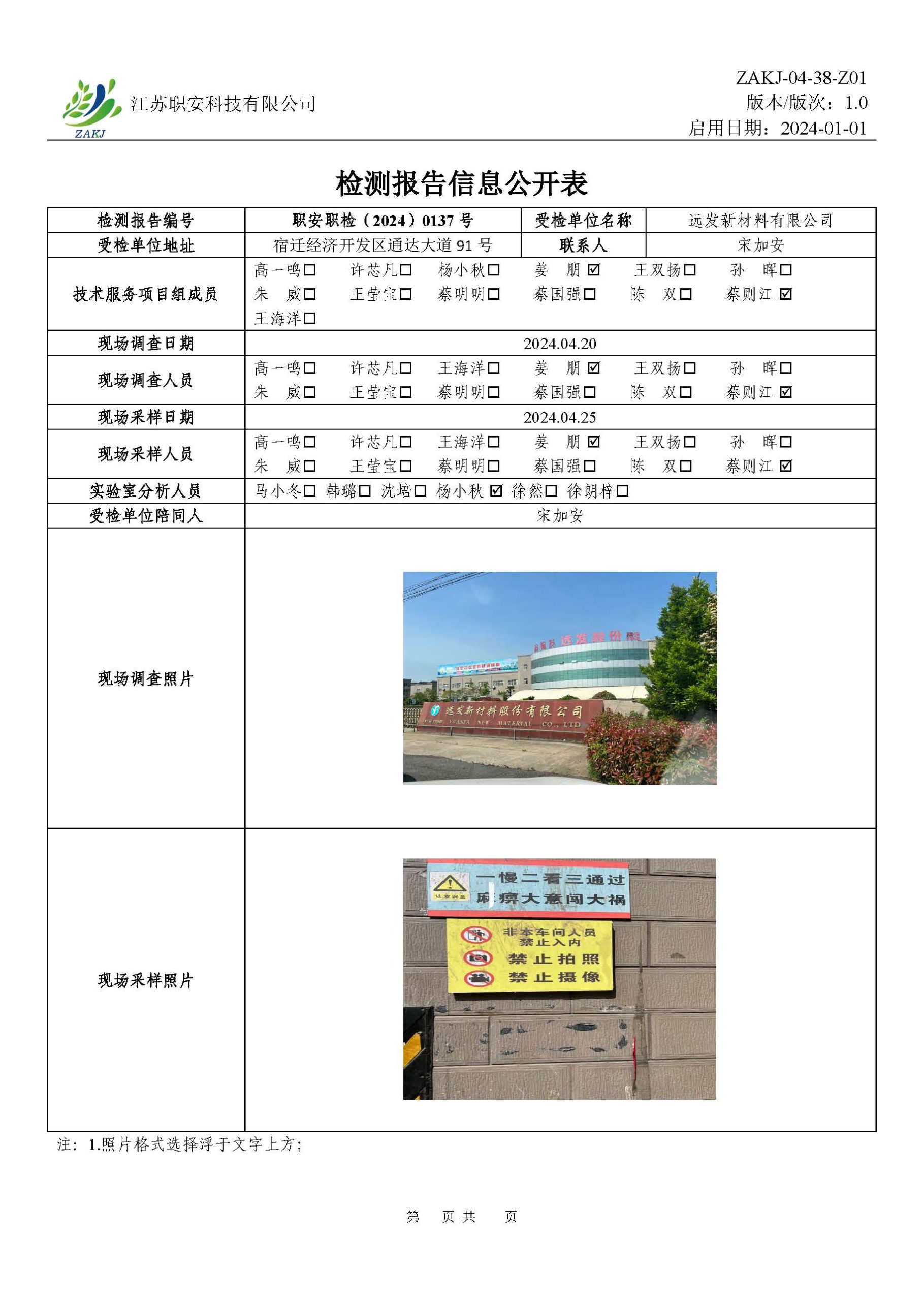 檢測報告公示