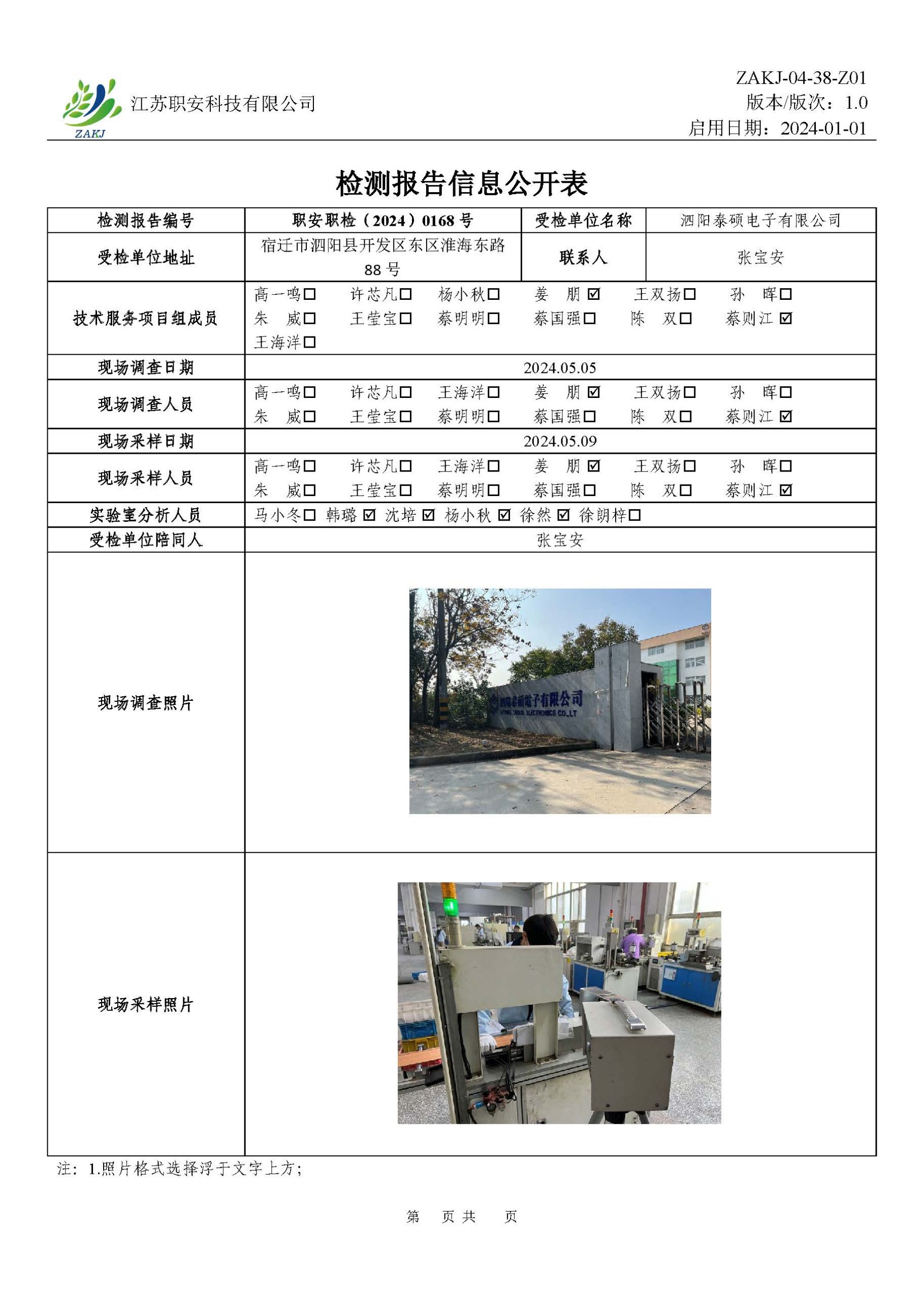 檢測報告公示