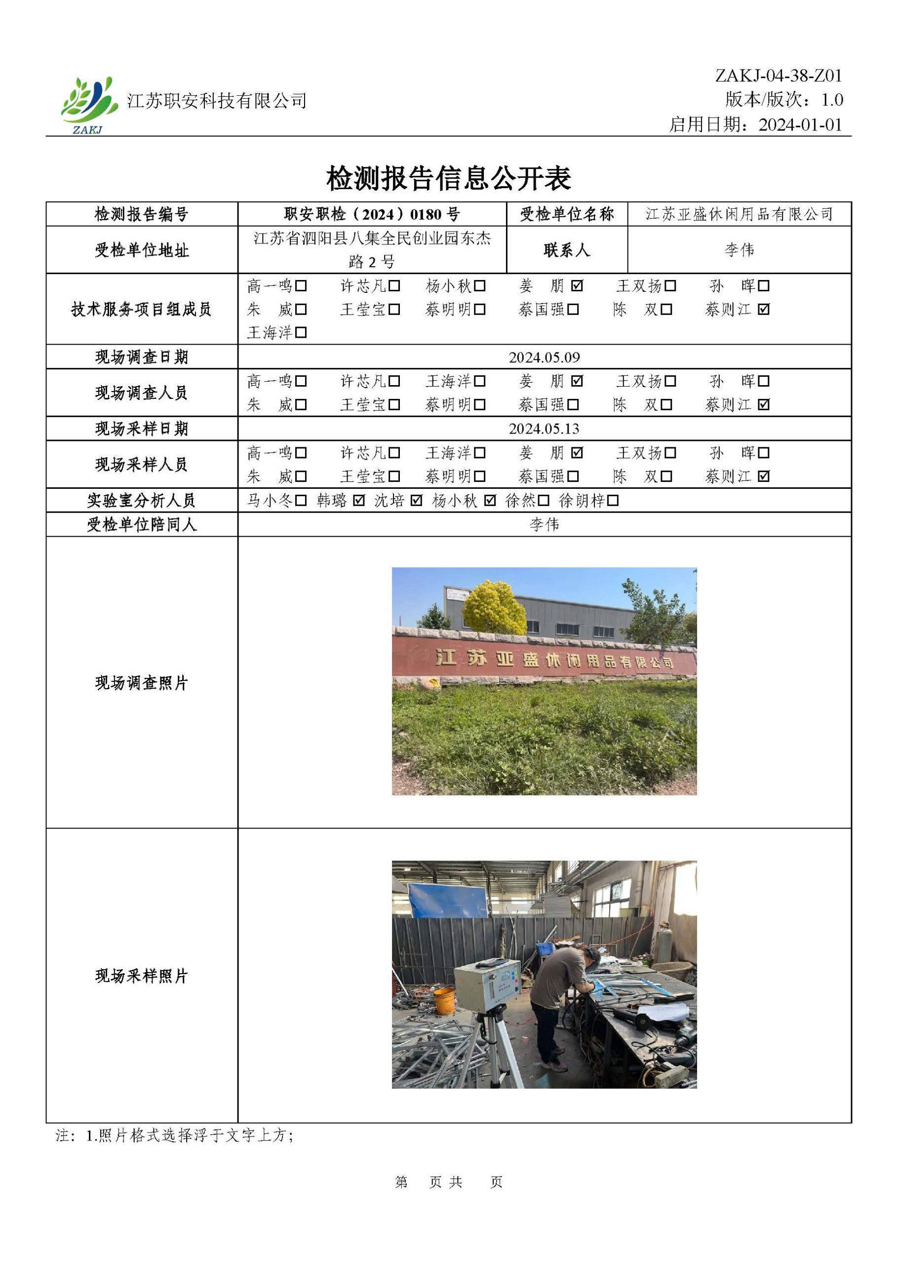 檢測報告公示