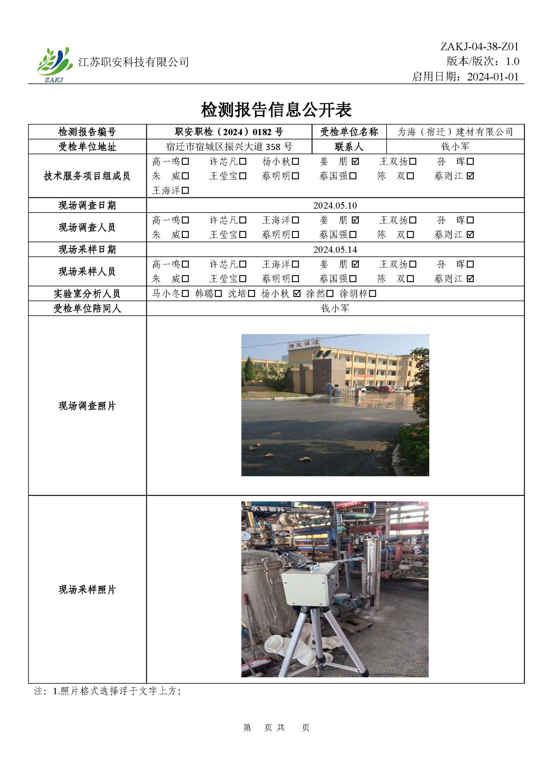 檢測報告公示