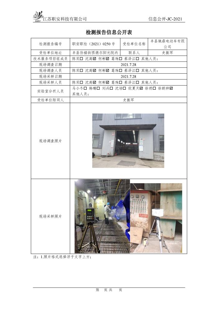 檢測報告公示